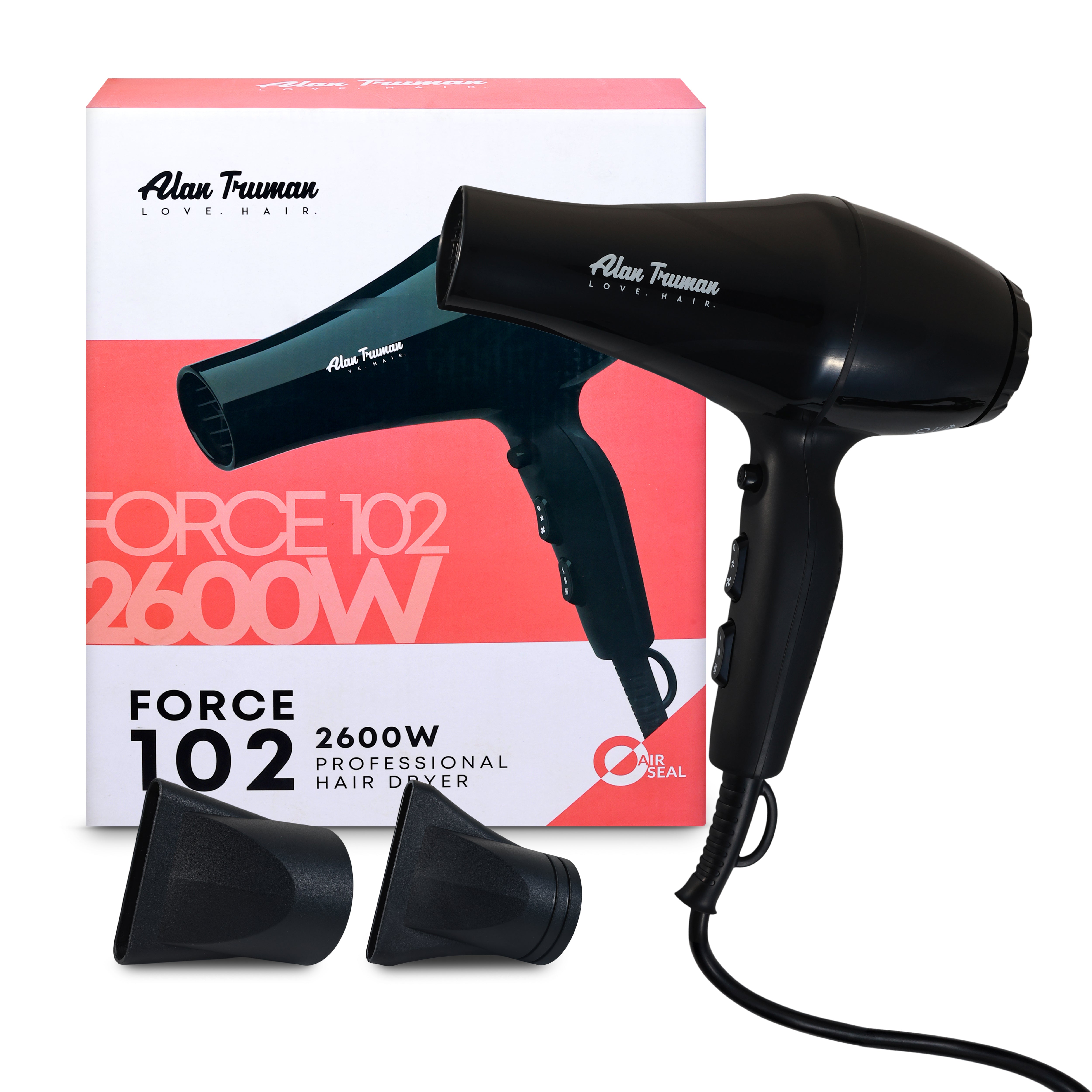 Get the new, styled look with Alan Truman Force 102 Professional Hair Dryer. One of the affordable offerings by Alan Truman to make your styling easy. Powered by a 2600 watts, high-quality torque professional AC Motor it gives an ultimate comforting feel while you style. It is sturdy, robust, strong, ready to take the load of everyday drudgery of blow-drying and blow styling. It is a smart, professional tool with an excellent ergonomic design real professional to effortlessly set your hair style after your blow-dry and ensure neither your hand nor your body is stressed during the most intensive styling session.