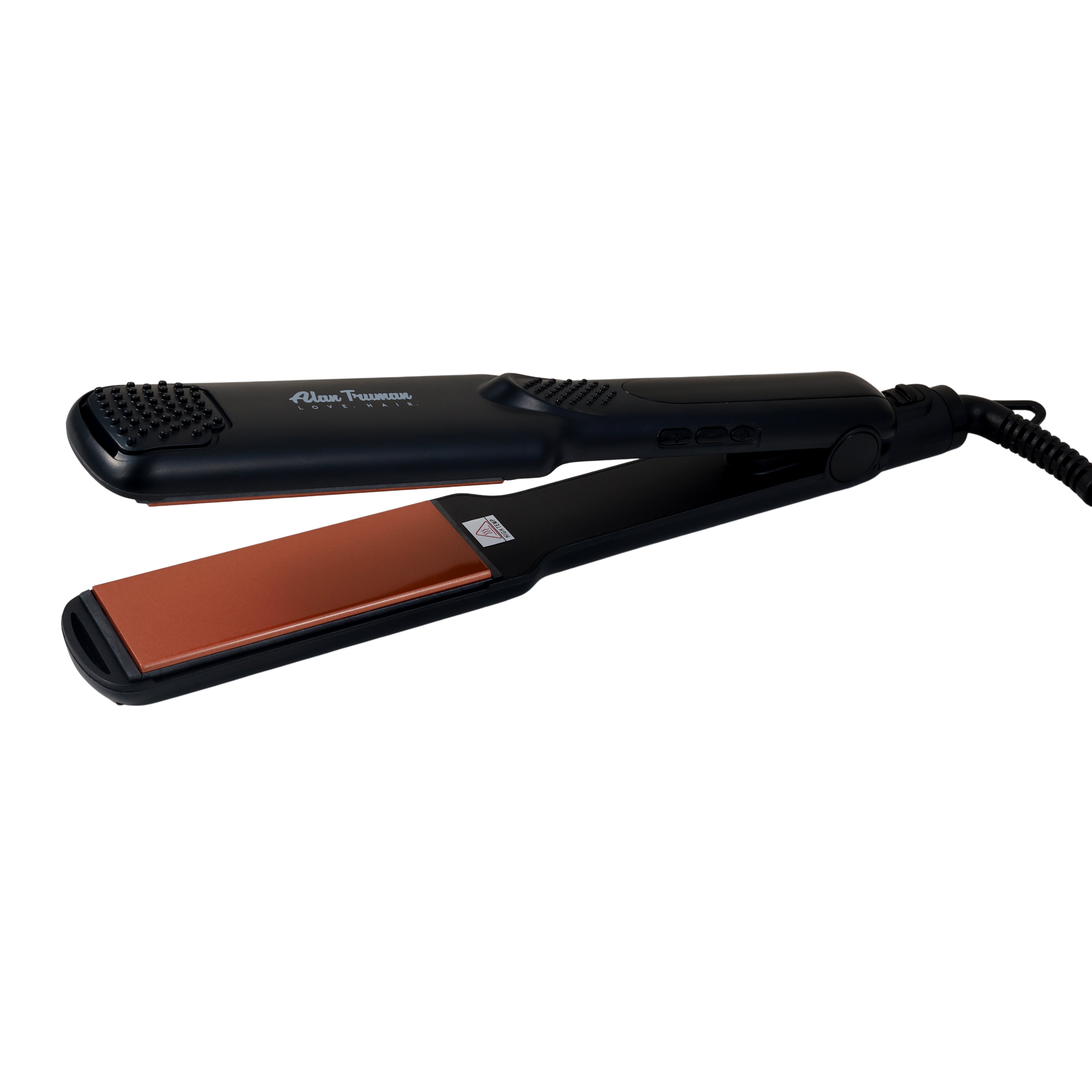 Wide plates for quicker styling and easier control on medium to very long hair.
